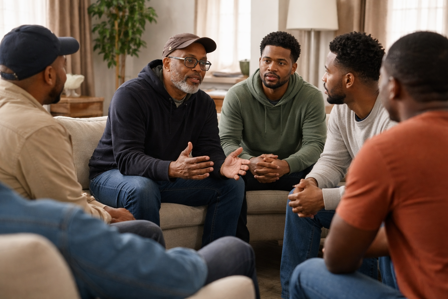 A grounded space for Black and Brown men to slow down, soften, and come home to themselves.